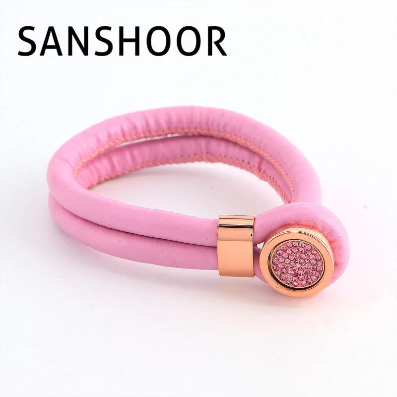 Metáforas for 1 unids encantadora Cambio de cuero Rosa pulsera oveja pulsera con cristal Rosa imán moneda